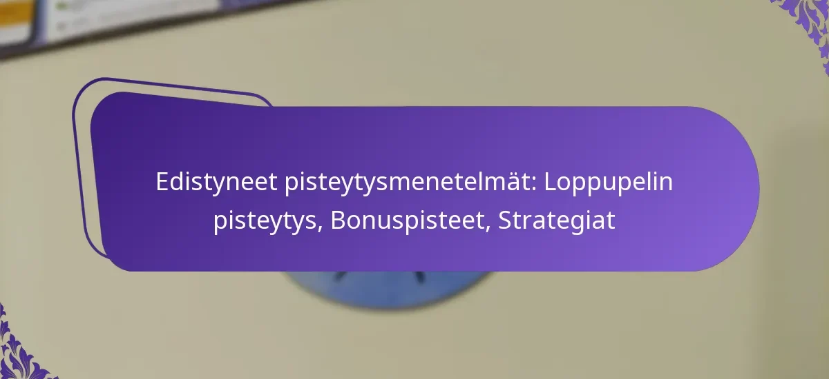 Edistyneet pisteytystekniikat peleissä käsittävät monimutkaisia menetelmiä pelaajien pisteiden laskemiseen, jotka ylittävät yksinkertaisen pisteiden keräämisen. Tärkeitä elementtejä, kuten loppupisteytys ja bonuspisteet, on keskeinen rooli strategioiden muokkaamisessa, sillä ne voivat dramaattisesti vaikuttaa lopputulokseen ja kokonaissuoritukseen. Näiden tekniikoiden ymmärtäminen antaa pelaajille mahdollisuuden optimoida pelityyliään ja saada kilpailuetua.