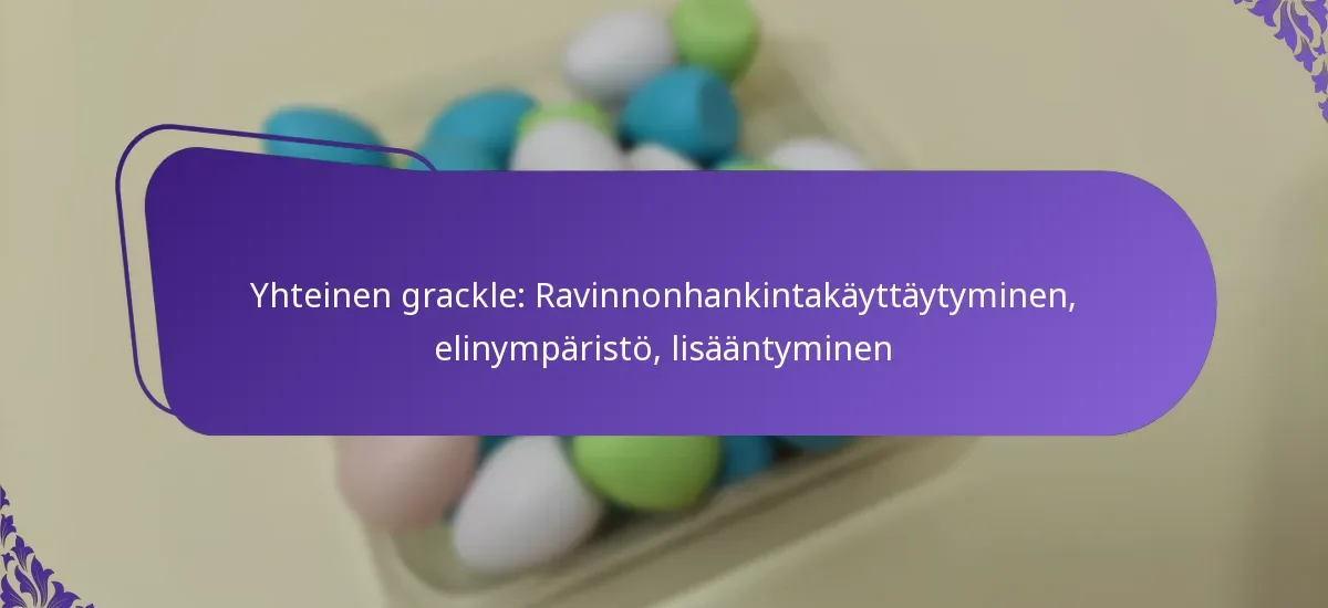 Yhteinen grackle on erittäin sopeutuvainen lintu, joka tunnetaan monipuolisesta ravinnonhankintakäyttäytymisestään, mikä mahdollistaa sen menestymisen erilaisissa elinympäristöissä, mukaan lukien kaupunki- ja maaseutuympäristöt. Mahdollisuuksia hyödyntävien ruokailutottumustensa ansiosta se käyttää tehokkaasti hyväkseen saatavilla olevia ravintolähteitä samalla, kun se osoittaa ainutlaatuisia lisääntymiskäytäntöjä, joille on ominaista monimutkaiset parittelunäytökset ja omistautuneet vanhemmuusroolit lämpimämpinä kuukausina.