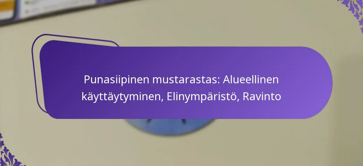 Punasiipikarhu on vaikuttava lintu, joka tunnetaan itsevarmasta alueellisuudestaan, erityisesti lisääntymisaikana, jolloin urokset puolustavat alueitaan houkutellakseen kumppaneita ja varmistaakseen ravintoa. Ne suosivat kosteikkoja, suoalueita ja niittyjä, jotka ovat elintärkeitä niiden pesimiseen ja ravinnon hankintaan. Niiden ruokavalio on monipuolinen, koostuen pääasiassa hyönteisistä, siemenistä ja hedelmistä, ja se mukautuu kausittaisiin muutoksiin ja saatavilla oleviin resursseihin.